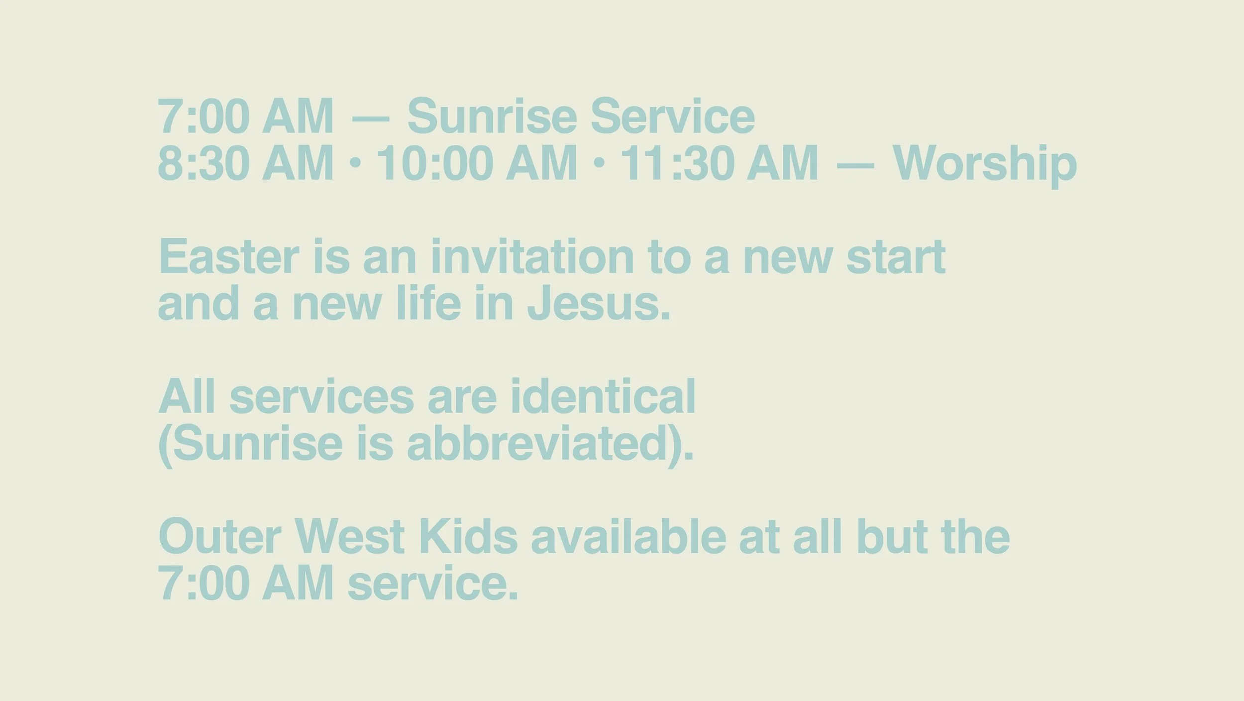Can’t make it in person on Easter weekend? Join us on live stream for Friday / Sunday worship services.