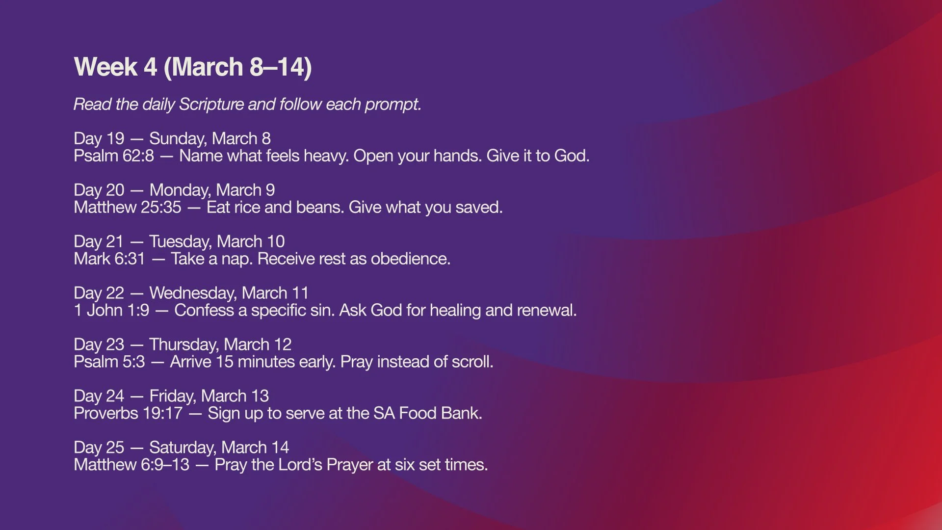 Our aim in embracing Lent at OWCC is to rediscover the inherent beauty of this season, where we welcome Jesus to realign our hearts toward Him by delving into the depths of our lives. -